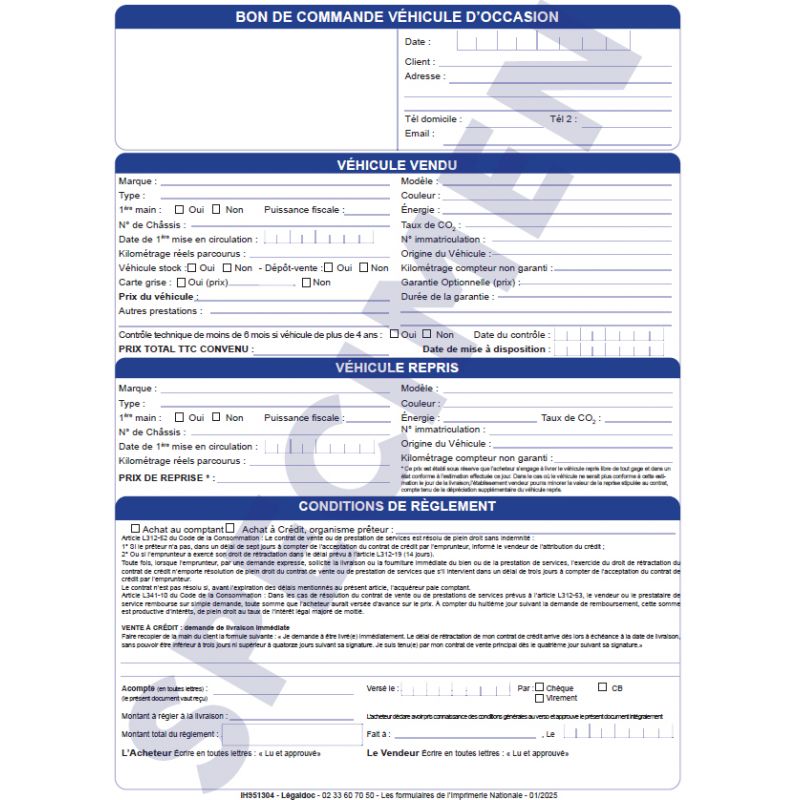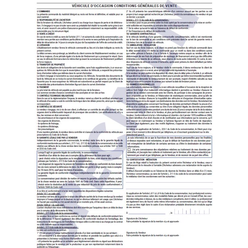 R : Oui, notre bon de commande est conçu pour être légalement contraignant et respecte les exigences légales pour la vente de véhicules d'occasion.