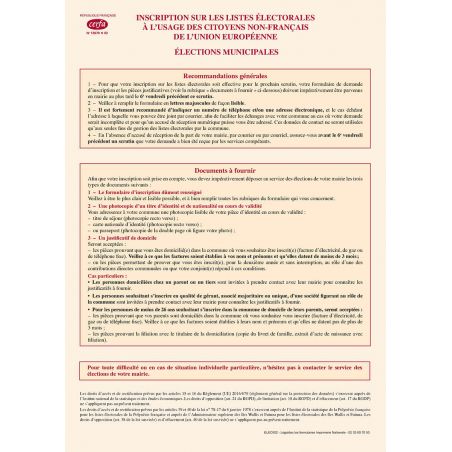 Cerfa 12671*02 Demande inscription liste électorale Citoyen non Français UE Pour l'élection des représentants français au Parlement Européen Impression recto verso quadri sur feuille 90 g Forfait...