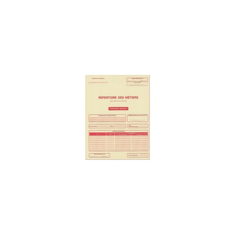 Chemise cartonnée pour classement et archivage des pièces relatives aux personnes morales: raison sociale, n° d'enregistrement, titres de qualification, récapitulatif des différentes pièces d'identification de la société et concernant les dirigeants, les établissements secondaires,...