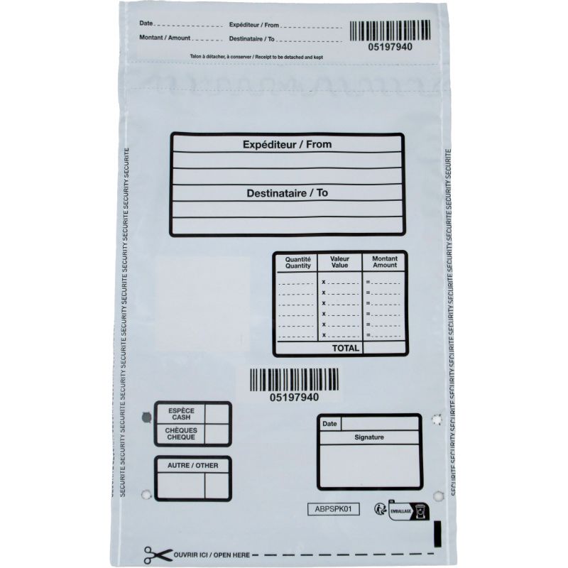 Sac à Monnaie Sécurisé Opaque 185*260 mm, pour la remise des billets, pièces de monnaie ou chèques.