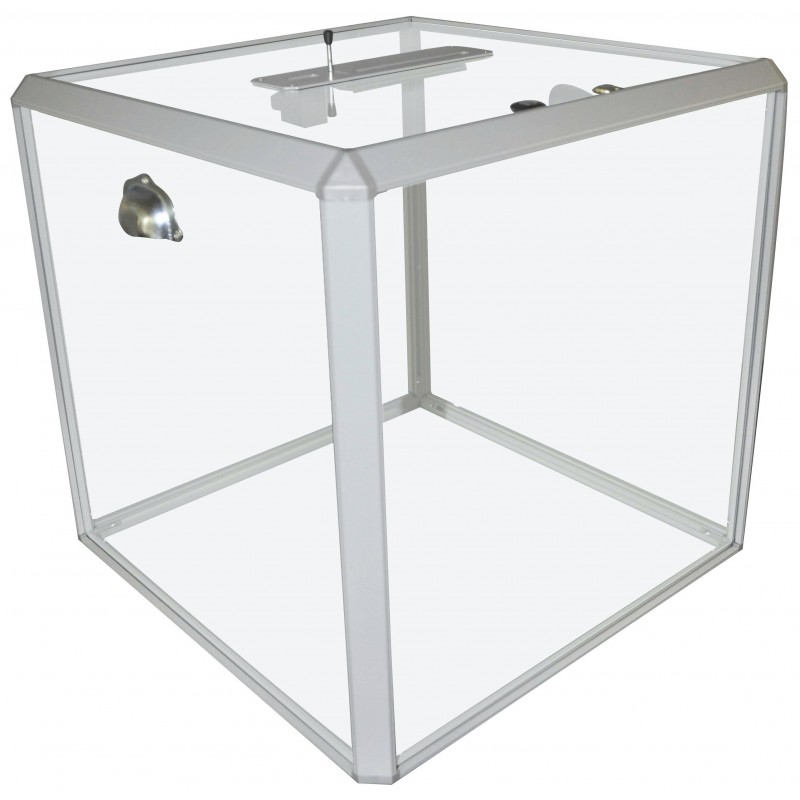 Urne empilable avec compteur, Structure en aluminium, 1600 à 2000 bulletins Structure en aluminium RAL 9006 Faces transparentes en PMMA incassable 2 serrures avec clés différentes Dimension...